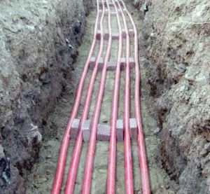 Прокладка кабеля и кабельных линий в земле (требования, условия, нормы):1. При прокладке кабельных линий непосредственно в земле кабели должны прокладываться в траншеях и иметь снизу подсыпку, ...[ далее ]
