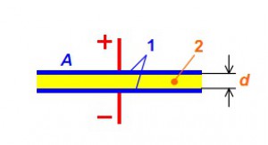 Рис. 1. Принцип устройства плоского конденсатора.