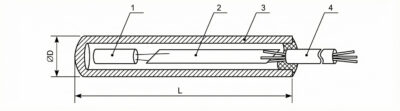 3 — защитный герметичный корпус (гильза), заполненный гелием для улучшения теплопередачи;
