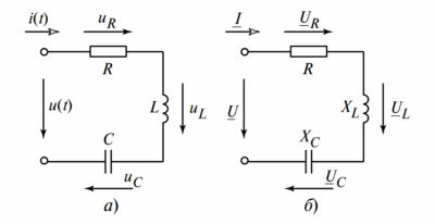 | Схема соединения | R, L, C соединены последовательно | Ветвь L и ветвь C соединены параллельно |