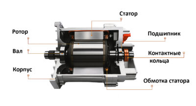 Главный конструктивный нюанс: в мощных машинах переменного и постоянного тока функции статора и ротора инвертированы (поменяны местами).