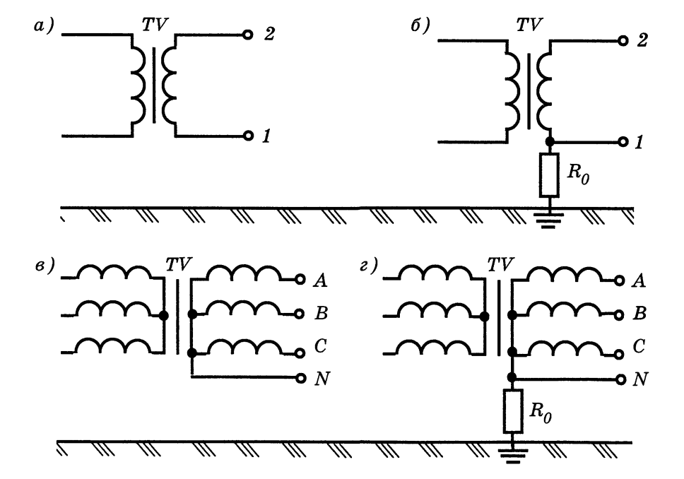 б — с глухозаземленной нейтралью до 1 кВ (система TN);