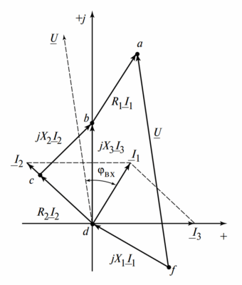 $$ \dot{I}_0 = \frac{\dot{E}_0}{Z_0} \quad ; \quad \dot{I}_1 = \frac{\dot{E}_1}{Z_1} \quad ; \quad \dot{I}_2 = \frac{\dot{E}_2}{Z_2} $$ - Находятся полные фазные токи путем синтеза: