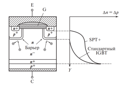 - IGBT-транзисторы: Используются при высоких напряжениях (>500-1000 В) и больших токах. Их рабочая частота обычно ограничена 20–40 кГц из-за «хвоста» тока при выключении, но они имеют меньшие потери проводимости при больших токах.