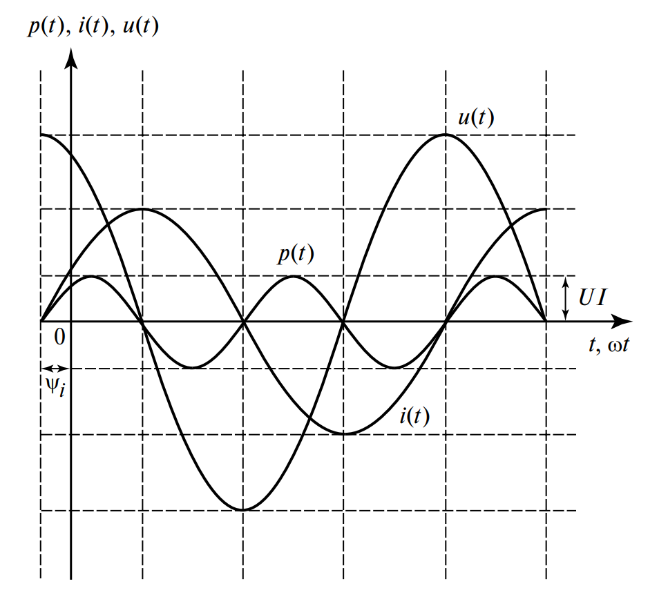 Энергетические процессы в индуктивности имеют колебательный характер. Мгновенная мощность \( p(t) \) определяется произведением мгновенных значений напряжения и тока: