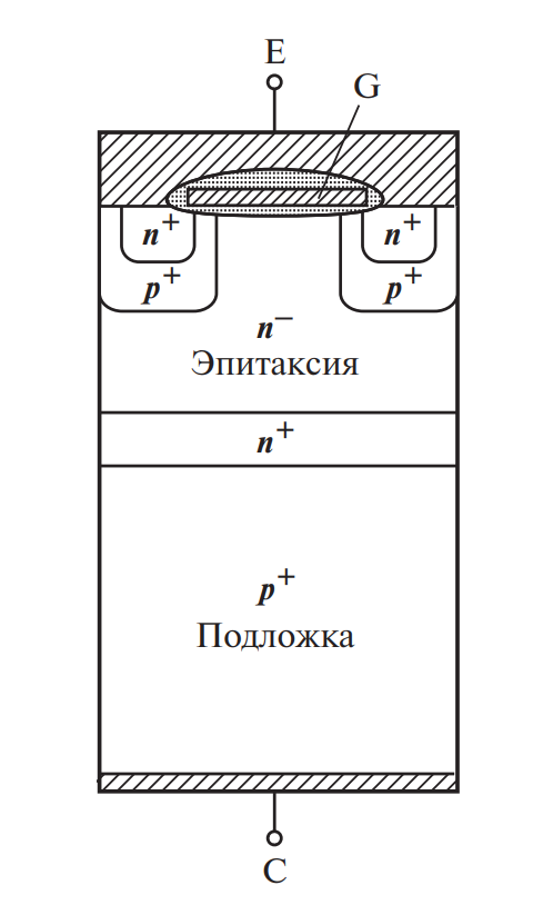 Рис. 1. Структура транзистора PT—IGBT (Эпитаксиальная технология).