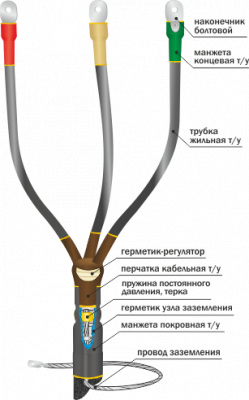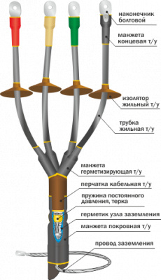 1КНПТ Концевая термоусаживаемая муфта наружной установки для 3-х и 4-х жильных кабелей на напряжение до 1 кВ