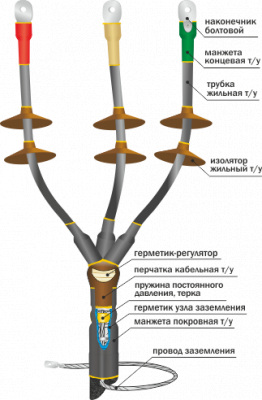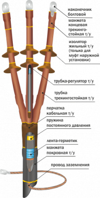 10КНТп Концевая термоусаживаемая муфта наружной установки для 3-х жильных кабелей с бумажной пропитанной изоляцией на напряжение до 10 кВ