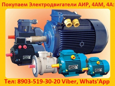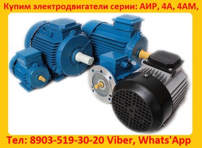 Купим на склад Электродвигатели серии: АИР, А, 5А, 4А, АД, АИ,4АМ, и др. мощностью от 1,5 кВт. 2,2 кВт. 3 кВт. 4 кВт. 5,5 кВт. 7,5 кВт. 11 кВт. 15 кВт. 18,5 кВт.