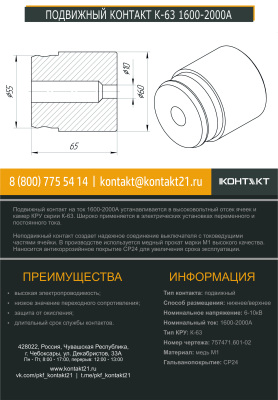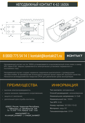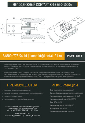 НЕПОДВИЖНЫЙ КОНТАКТ К-63 630-1000А 301359.115
