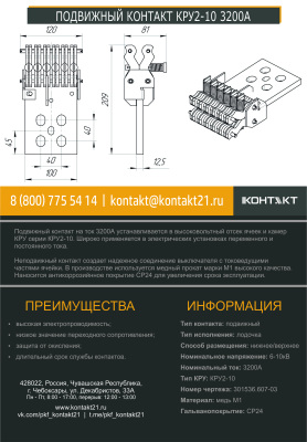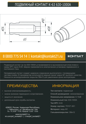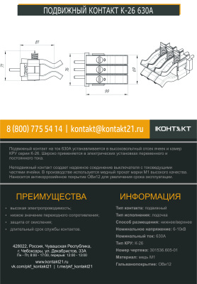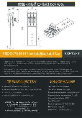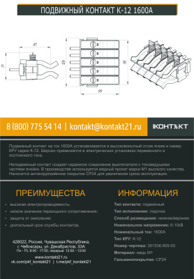 ПОДВИЖНЫЙ КОНТАКТ К-12 630А 301536.605-01