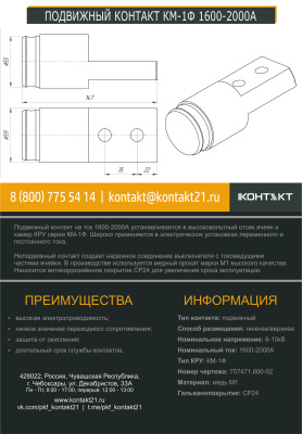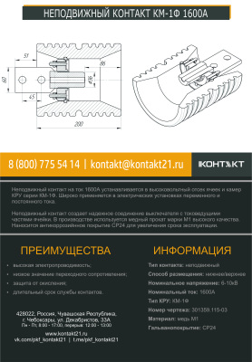 НЕПОДВИЖНЫЙ КОНТАКТ КМ-1Ф 630-1000А 301359.115