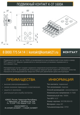 НЕПОДВИЖНЫЙ КОНТАКТ К-37 1600А 741214.301-02