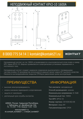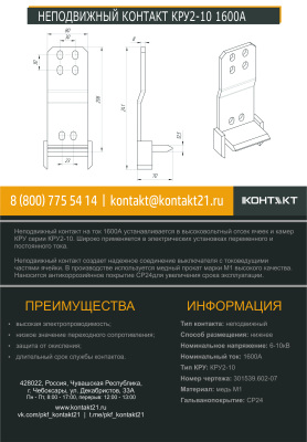 НЕПОДВИЖНЫЙ КОНТАКТ КРУ2-10 1600А 301539.602-03