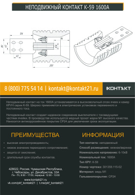 НЕПОДВИЖНЫЙ КОНТАКТ К-59 1600А 301359.115-05