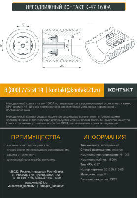 НЕПОДВИЖНЫЙ КОНТАКТ К-47 1600А 301359.115-02