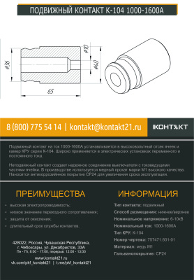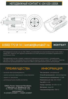 НЕПОДВИЖНЫЙ КОНТАКТ К-104 630-1000А 301359.115-14