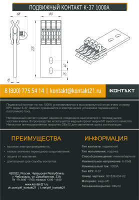 ПОДВИЖНЫЙ КОНТАКТ К-3У 1000А 301536.611-01