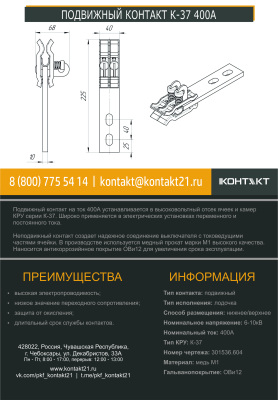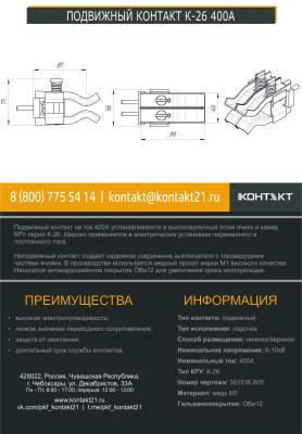 ПОДВИЖНЫЙ КОНТАКТ К-12 400А 301536.605