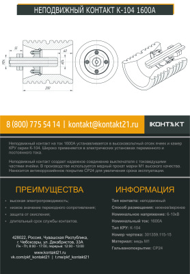 НЕПОДВИЖНЫЙ КОНТАКТ К-104 1600А 301359.115-15