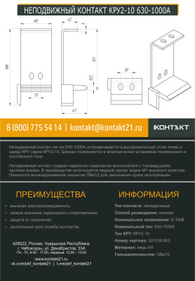 НЕПОДВИЖНЫЙ КОНТАКТ КРУ2-10 630-1000А 301539.602-01