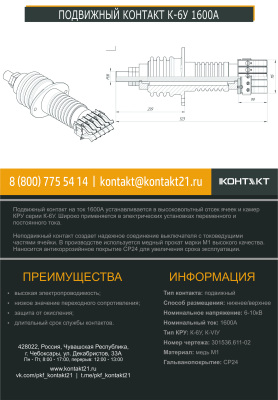 ПОДВИЖНЫЙ КОНТАКТ К-6У 1600А 301536.611-02
