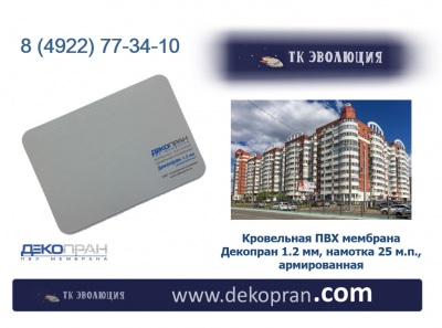 | Примечание: Декопран, ПВХ-мембраны Декопран, ПВХ-мембрана для кровли - Декопран, Декопран ПВХ-мембрана - 1.2 мм, намотка 25 м.п., армированная | |||||||||||||||||