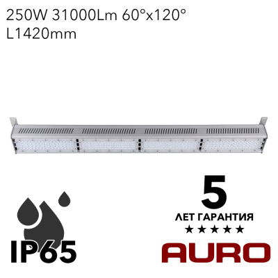 Складской светодиодный светильник с глубокой диаграммой AURO-OPTIMUS-250 (250W 31000Lm 1420mm IP65).