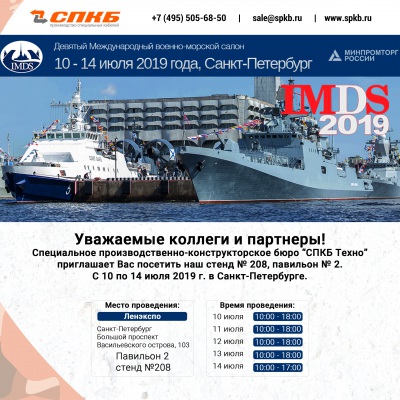 Специальное производственно-конструкторское бюро "СПКБ Техно" приглашает Вас посетить наш стенд на Международном военно-морском салоне, являющимся одной из ведущих ...[ далее ]