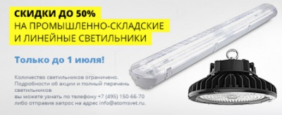 Компания «АтомСвет Энергосервис» до 1 июля предлагает приобрести по сниженным ценам светодиодные светильники следующих типов и моделей: