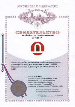 Дивногорский завод рудничной автоматики получил исключительные права на фирменный товарный знак производителя. На сегодняшний день знак в форме круга с символическим входом в шахту нанесен на все изделия ...[ далее ]