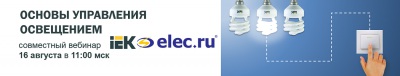 16 августа в 11:00 состоится очередной совместный вебинар Группы компаний IEK и интернет-портала Elec.ru. Тема вебинара: "Основы управления освещением". Участие бесплатное.