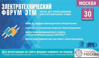 30 сентября 2015 года в конгресс-центре «Технополис Москва» состоится крупнейшее мероприятие кабельной отрасли - «Электротехнический форум», который организован компанией ЭТМ. В ходе форума будет проведено ...[ далее ]