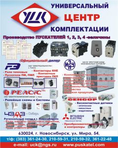 Направление деятельности ООО «УЦК» - производство электромагнитных пускателей 1,2,3,4 величины, нового поколения серии ПМ12-010(10А), ПМ12-040(40А),ПМ15-063(63А) и ПМЛ2000(25А) впервые за Уралом, производится ...[ далее ]