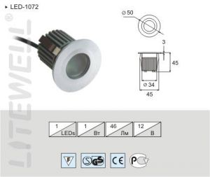 Среди новинок торговой марки ЛАЙТВЕЛЛ - встраиваемый светильник LED-1072. Подходит для точечной подсветки ниш, стен, потолков, ступенек лестниц. Очень низкое энергопотребление- всего 1Вт. Небольшие размеры ...[ далее ]