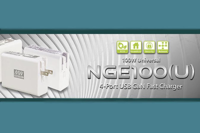 Серия NGE100 (U) MEAN WELL -универсальное зарядное устройство на основе нитрида галлия (GaN) мощностью 100 Вт с четырьмя USB-портами и сменными вилками.
